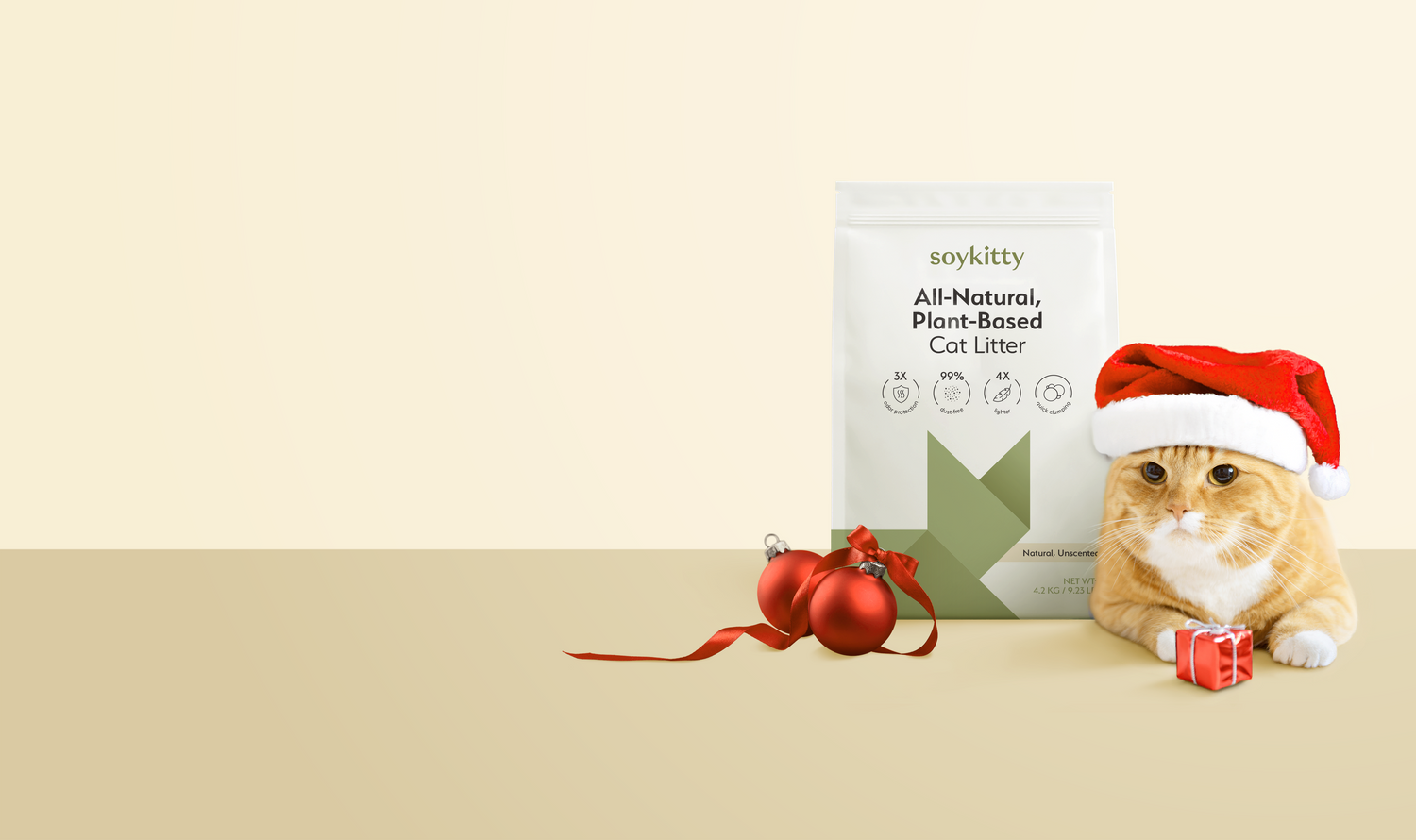 SoyKitty is made from simple, biodegradable ingredients: soybeans, guar gum, and cornstarch. You’ll never find synthetic additives, toxins, clumping agents, or artificial fillers in our litter.